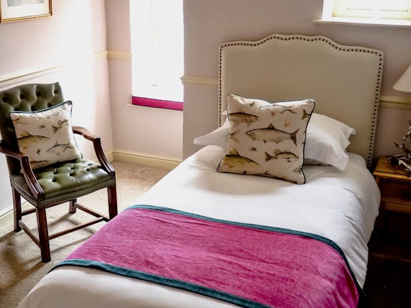 Two comfortable junior suites with character king size beds, and a sitting area with a sofa bed and coffee table within the room. En suite bathrooms with showers over the bath.