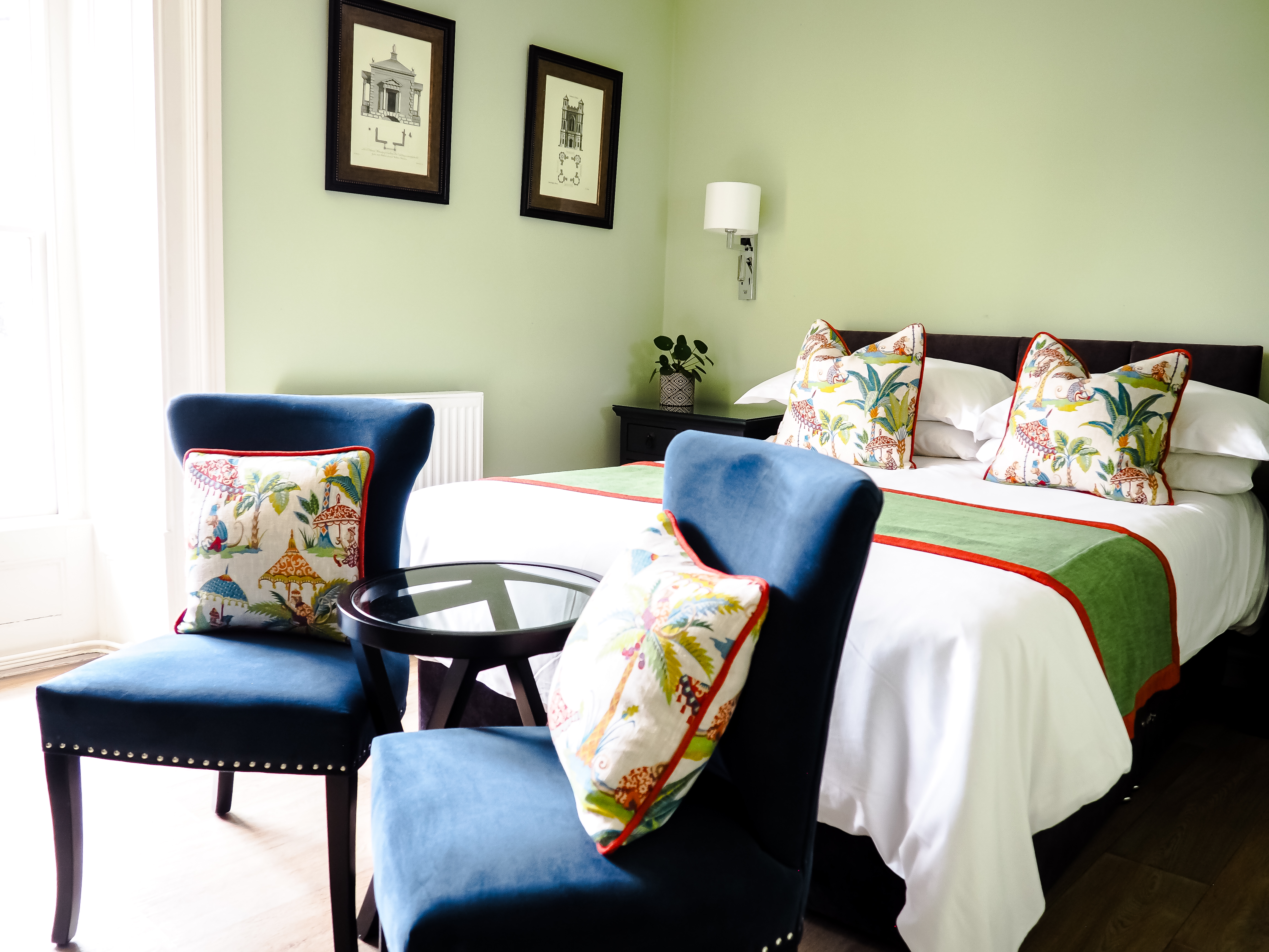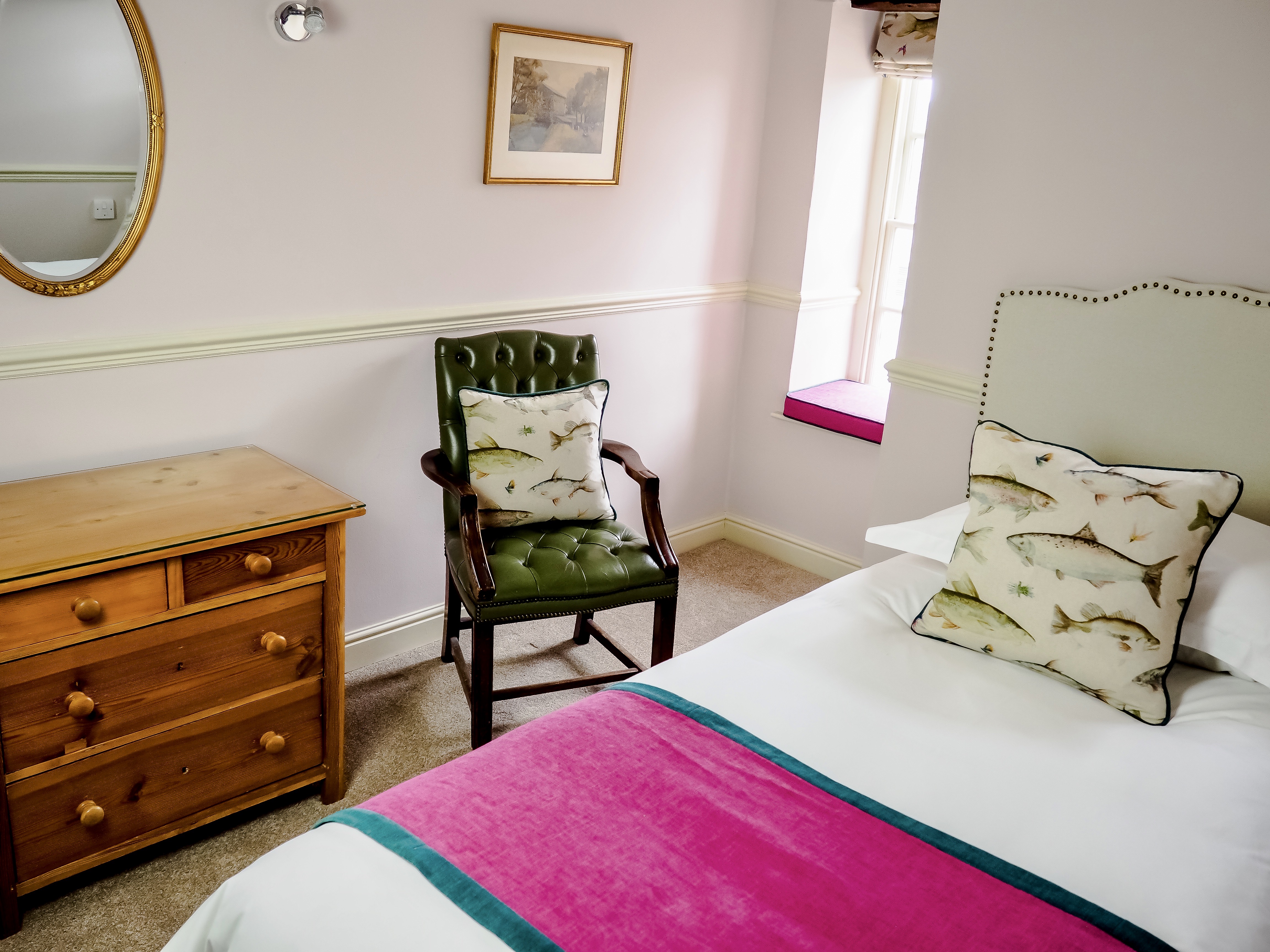 One room overlooking the market square, and one quieter blue room overlooking the rear of the hotel which is dog friendly.