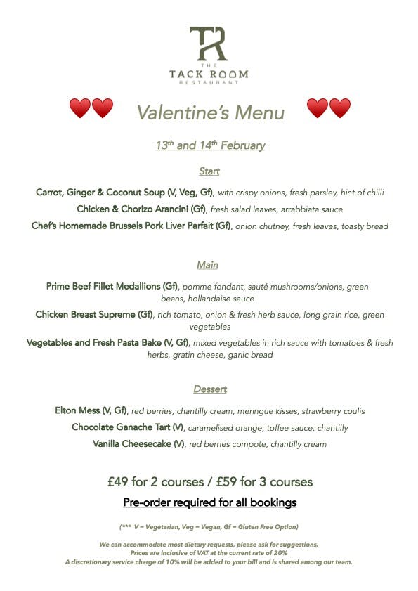 Valentine’s Celebration at The Tack Room Restaurant