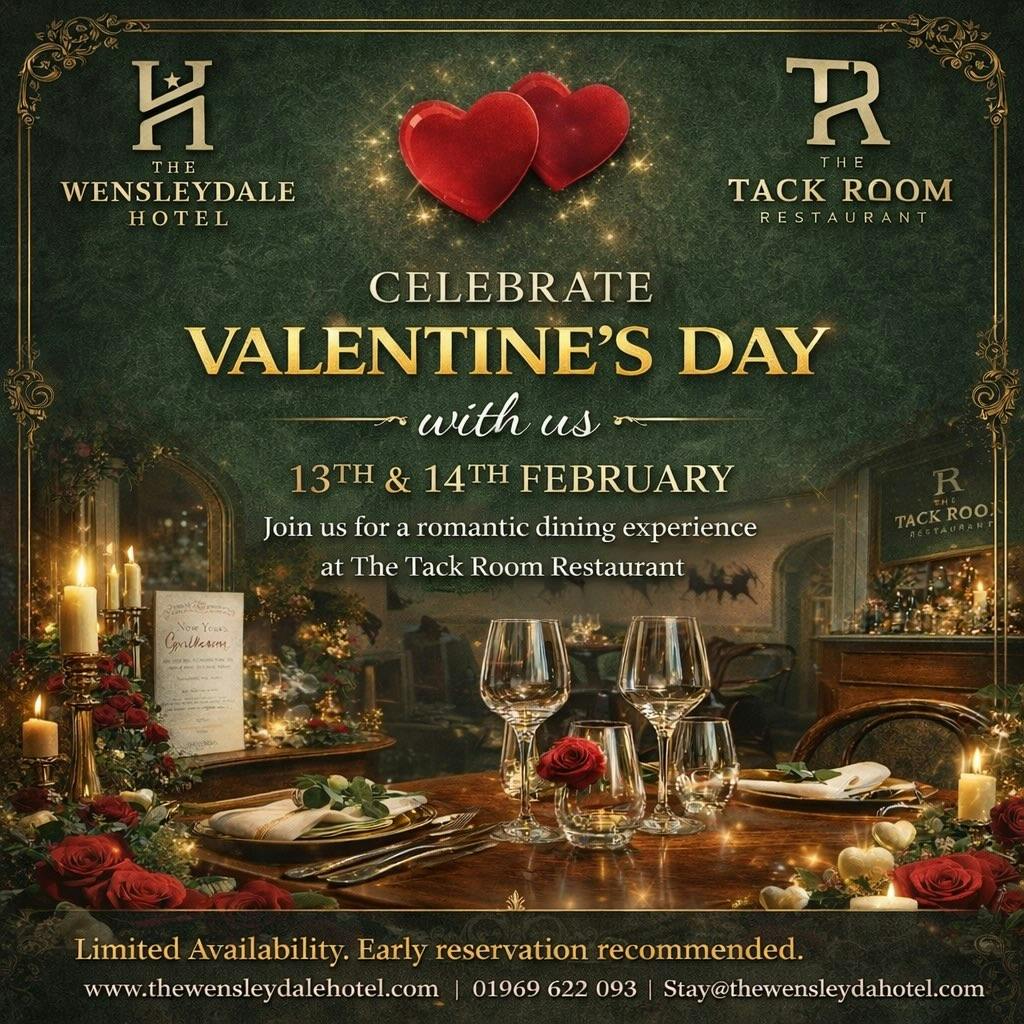 Celebrate Valentine’s Day with a romantic dining experience at The Tack Room Restaurant, located within The Wensleydale Hotel.